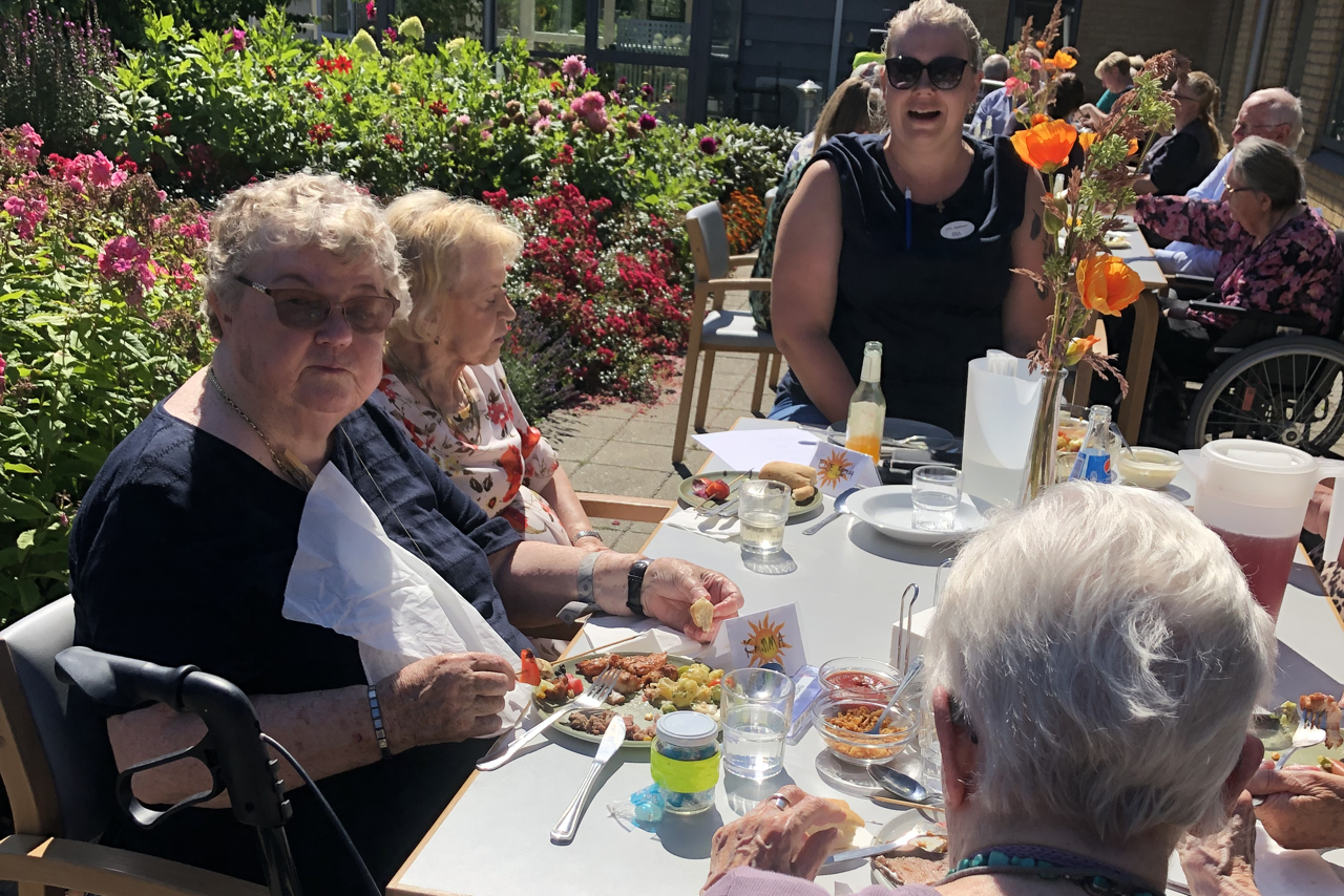Vi tror på, at sundhed handler om hele livet. Fra det vi spiser til det, vi tænker. Derfor tager vi vare på hele mennesket, fra krop til sjæl. Som det første plejehjem i Danmark er vi certificeret i pædagogisk idræt. Vores sansehave med træer og stier er lige uden for døren. Hver dag efter andagt og fællesskab kan beboerne vælge at deltage i bevægelse. Vores spiseseddel er vegetarisk og vegansk kost - med kød og fisk som tilvalg. Maden er lavet fra bunden - i vores eget køkken, og dagens ret bliver altid præsenteret af kokken.