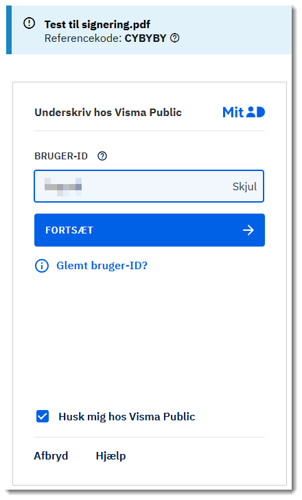 - Du bliver nu bedt om at underskrive med MitID. Du skal bruge samme MitID, som du brugte til at logge ind med.